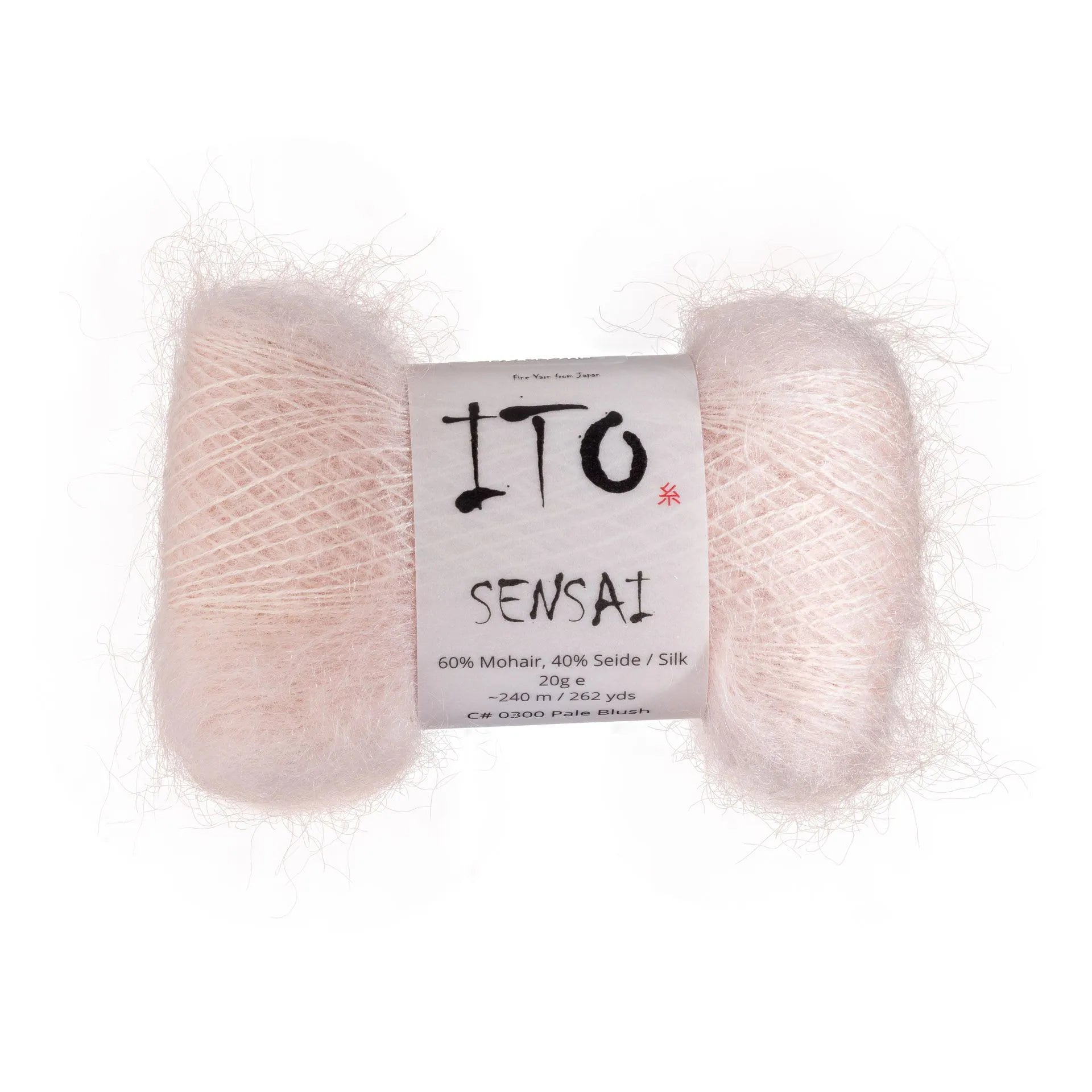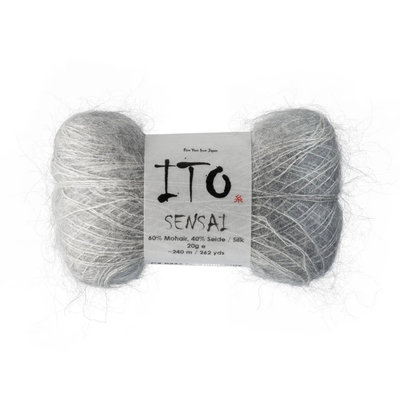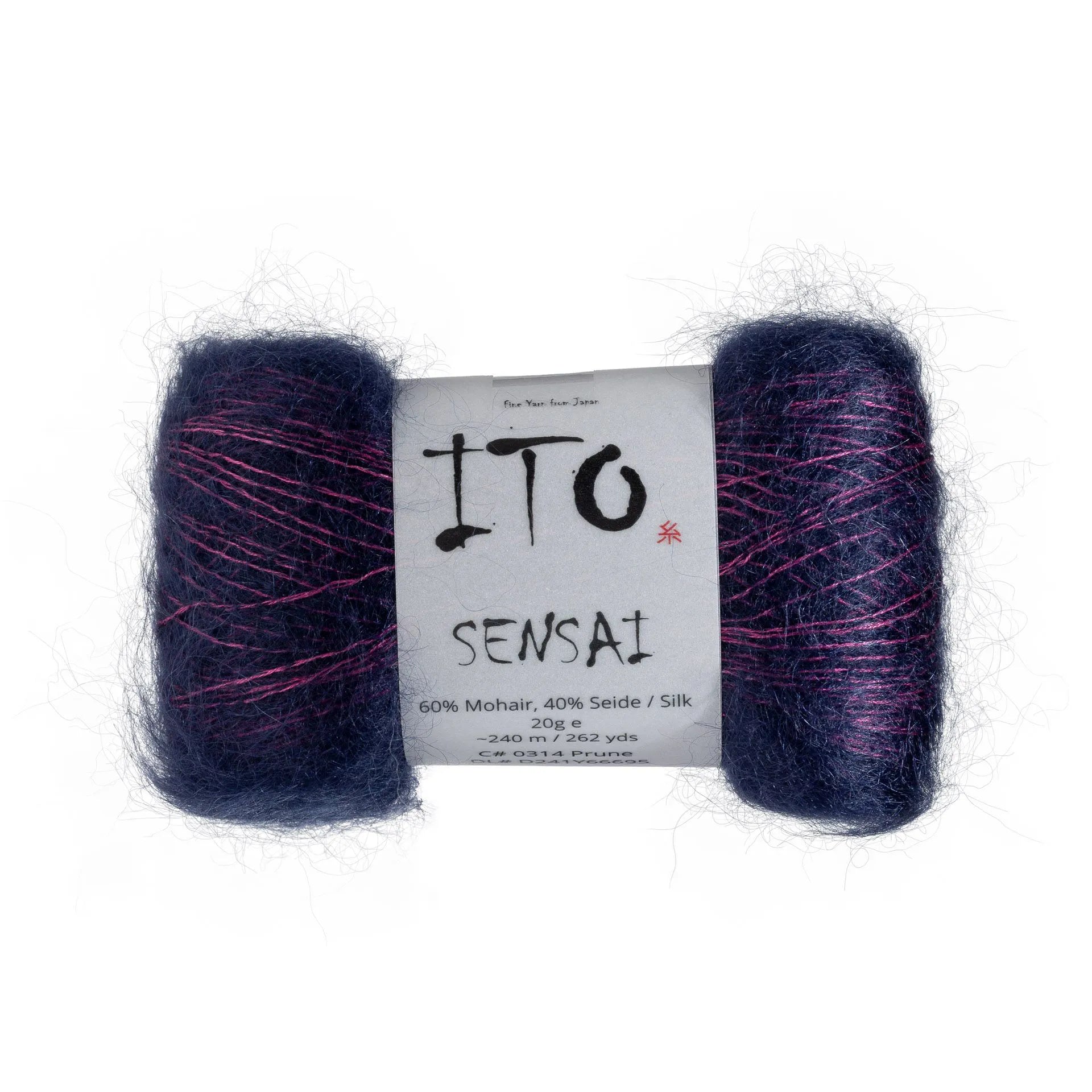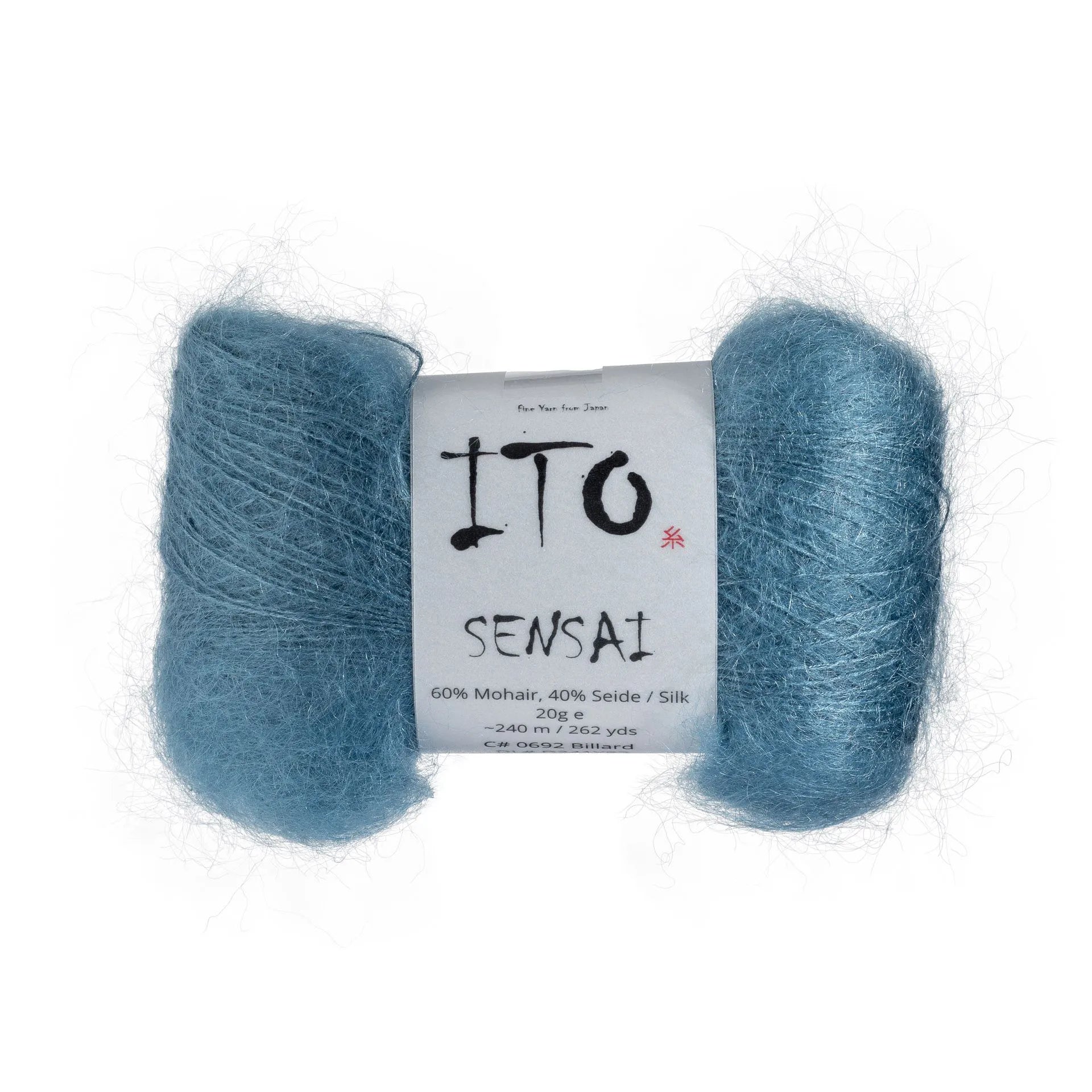 ITO Sensai ist ein zartes Mohairgarn mit 40% Seidenanteil, luxuriös und federleicht. Es eignet sich für Spitzenarbeiten, als Beilaufgarn und für leichte, elegante Kleidungsstücke.